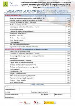 Las plazas son limitadas, así que hay que realizar la inscripción cuanto antes para asegurar la plaza. Para más información o para inscribirse, se puede visitar https://www.eciformacion.com/formacion-gratuita/ o escribir a info@eciformacion.com con el listado de cursos que te interesen relleno (ver documento adjunto).